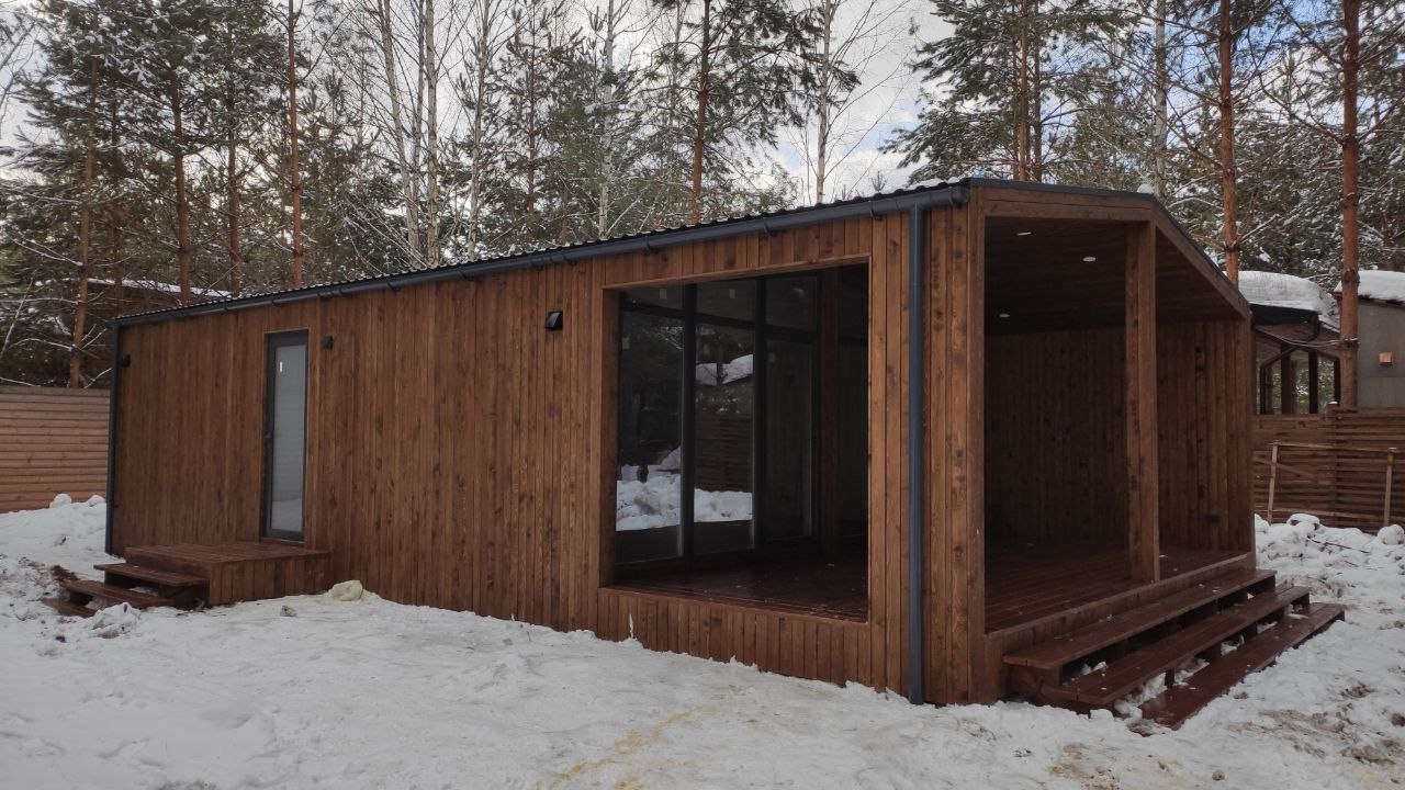 Дом выглядит современно и аккуратно сразу после монтажа.