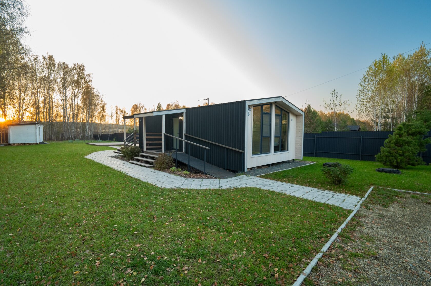 Модули приезжают полностью собранными и устанавливаются на участке за 1–2 дня. Никакой стройки — только монтаж.