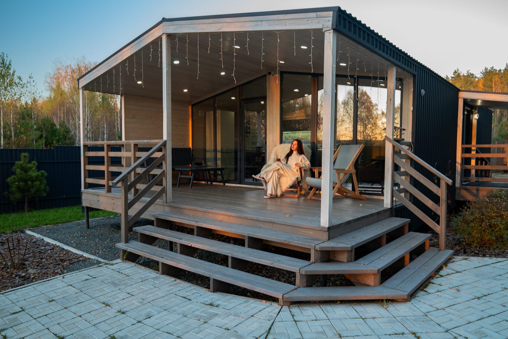 Материалы полностью защищены от осадков, перепадов температур и влажности — это принципиально отличает модульное строительство от классической стройки на участке.