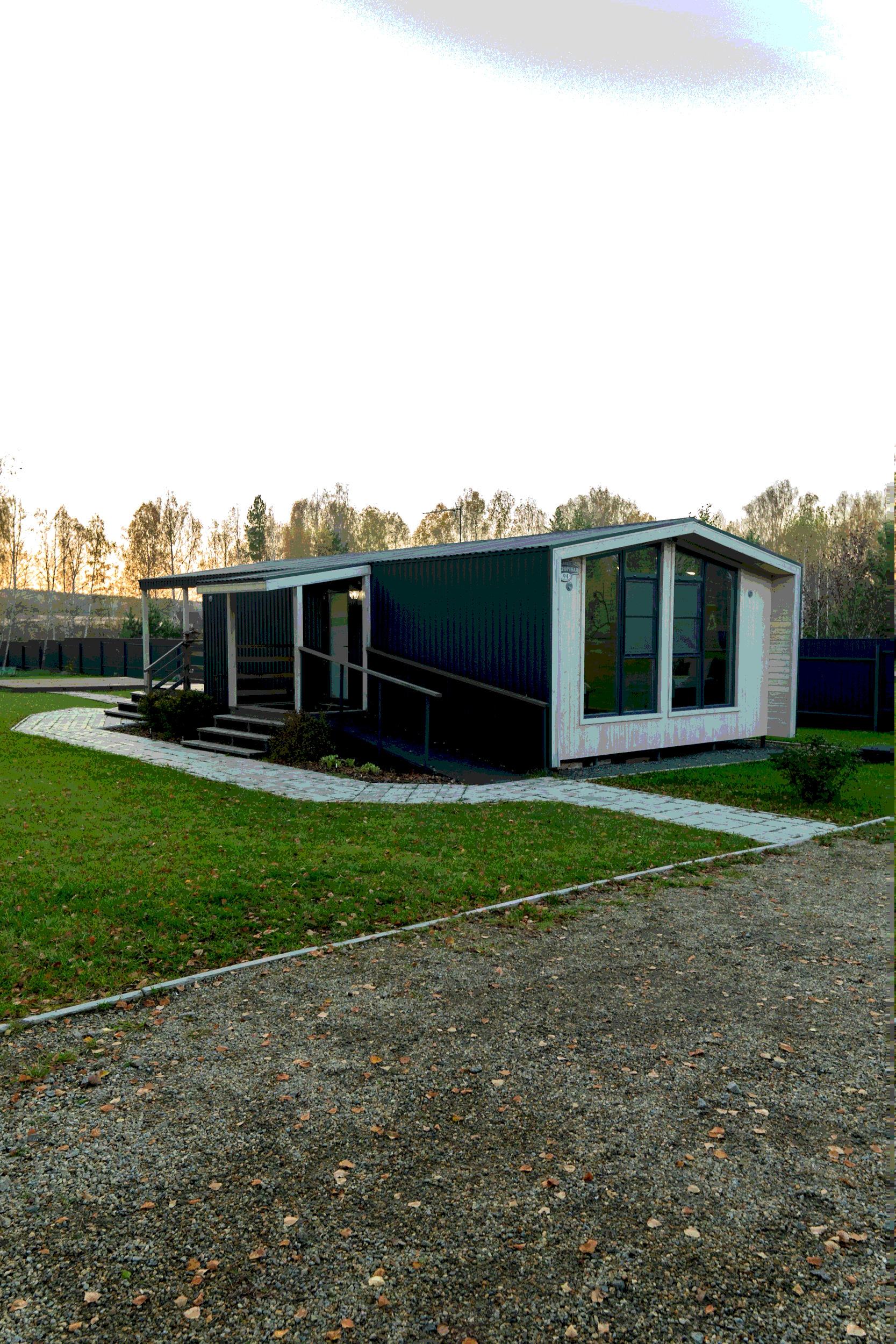 Готовые модули доставляются на участок, устанавливаются на свайный фундамент и собираются всего за 1–2 дня.