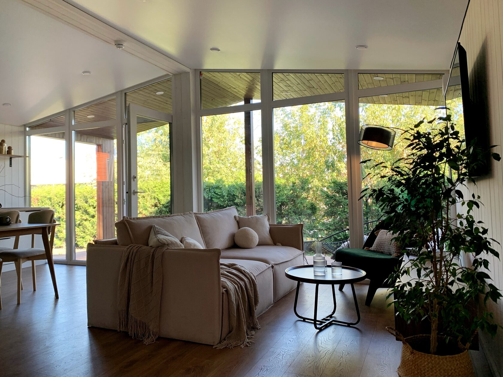 В каждом доме установлен водяной тёплый пол и внутрипольные конвекторы у панорамных окон — это не только уют, но и эффективное распределение тепла.